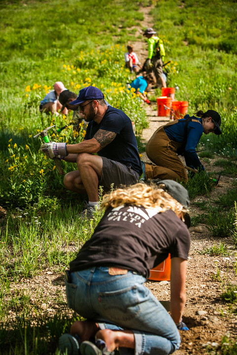 The AEC was thrilled to host summer volunteer and stewardship events after having to put these efforts on hold in 2020. This summer, over 20 volunteer, stewardship,and educational events were held here at Alta. Summer events included live birds of prey brought to the Alta Town Park by HawkWatch, monthly birding hikes led by a conservation ecologist from Tracy Aviary, and on-the-ground conservation events in which hundreds of volunteers showed up to donate their time and labor. Together, we planted 1,000 trees and over 5,000 plants; removed invasive species from areas all over the mountain totaling over 100 acres; and harvested approximately 165 Engelmann spruce saplings from groomed runs for replanting elsewhere on the mountain.