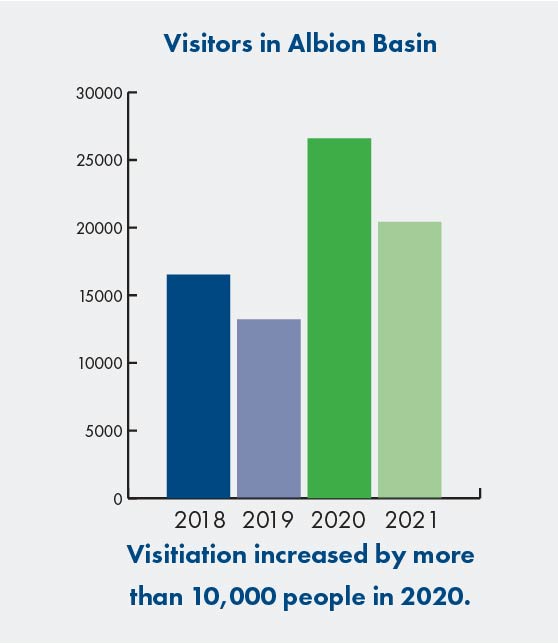 - The Albion basin parking lot was able to stay open for the entire summer for visitor parking. With this, Alta was able to open bathroom facilities 7 days/week during peak summer visitation.
