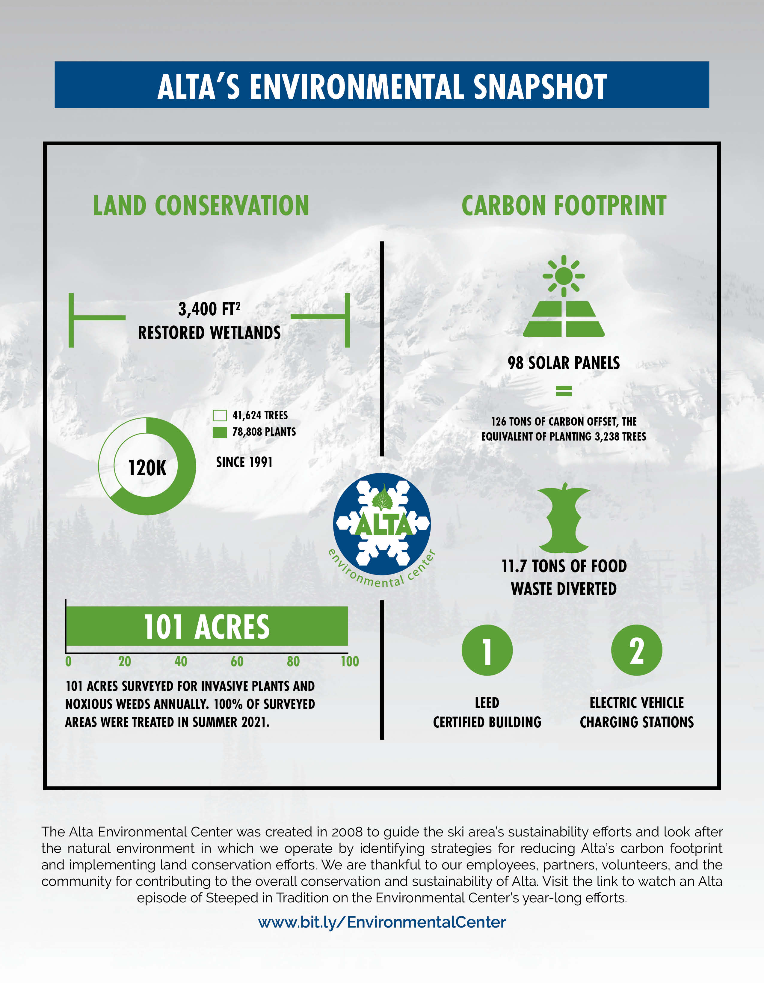 THE ALTA ENVIRONMENTAL CENTER RELEASED ITS ANNUAL REPORT ON CONSERVATION AND SUSTAINABILITY EFFORTS.