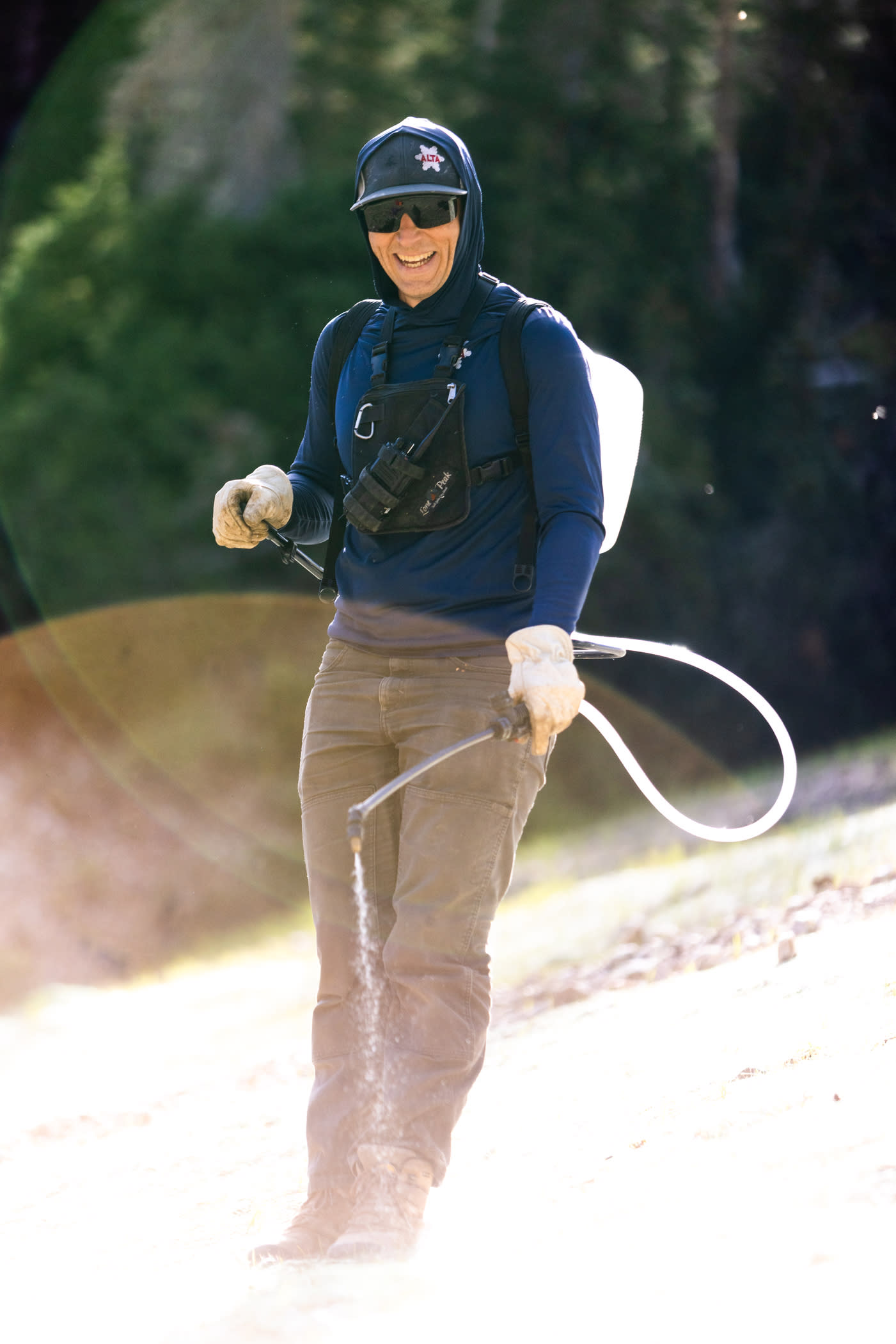 Alta employee, Andy Gishen, waters a freshly planted native grass seed mix. | Photo: Rocko Menzyk